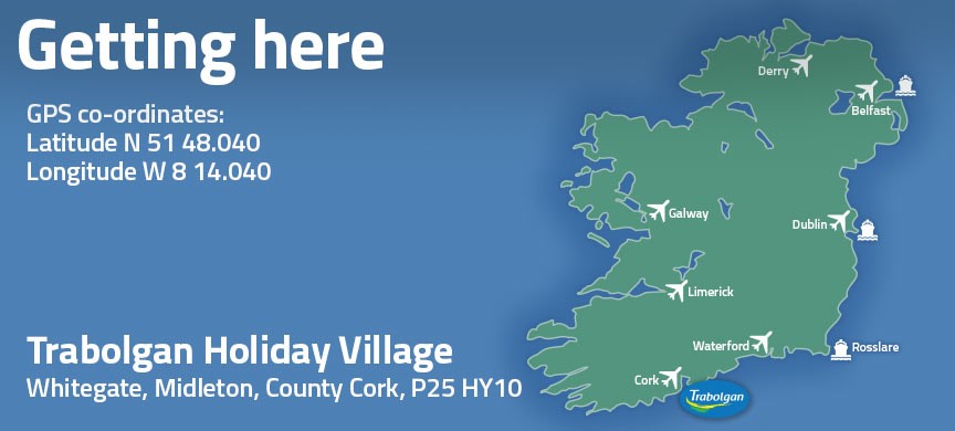 Cork transfers offers you the perfect solution if you plan to take the bus or train for your family holiday. They can collect you from the bus or train station and take you directly to Trabolgan. Contact them directly for details and pricing cork transfers contact.